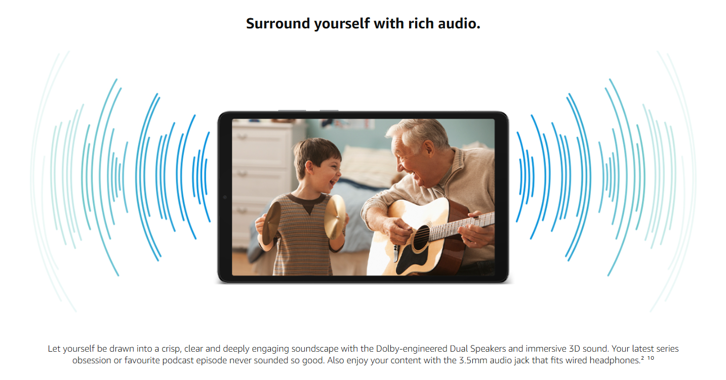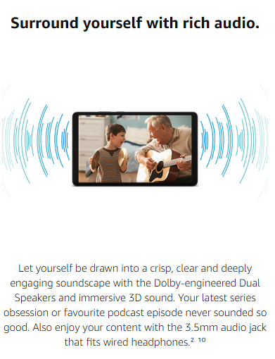 • AN IMMERSIVE EXPERIENCE: The Galaxy Tab A11 features Dolby-engineered Dual Speakers that deliver a rich audio. Soak up your favourite entertainment with the 3D sound or plug into the 3.5mm audio jack and enjoy your content with wired headphones.