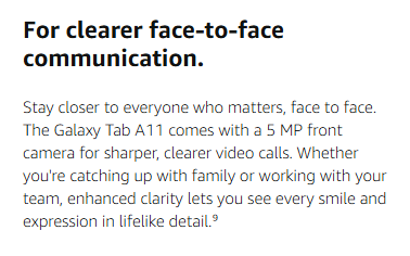 • FEEL CONNECTED TO THOSE THAT MATTER: Clearer and sharper face-to-face video calls with the 5MP front camera. Appreciate every smile and expression in lifelike detail, whether you're catching up with family or working with your team.