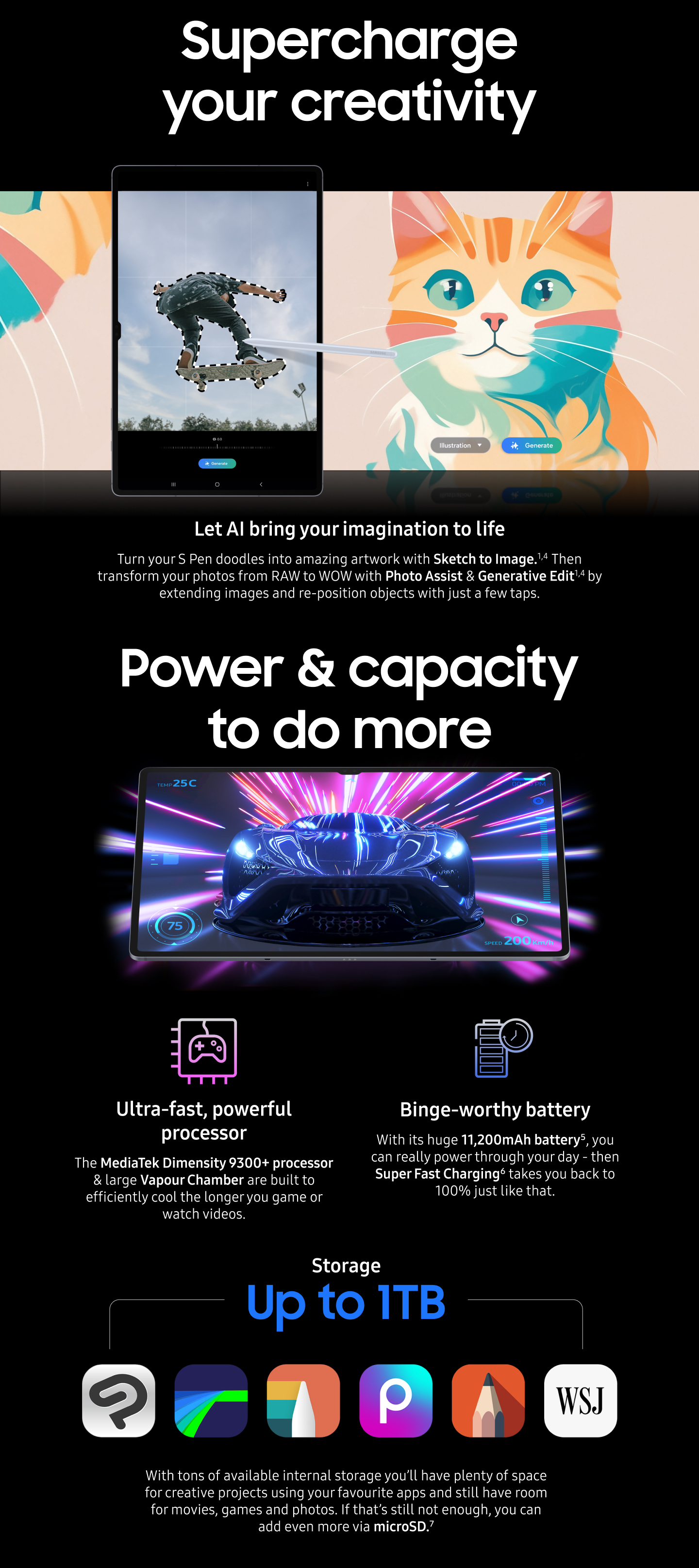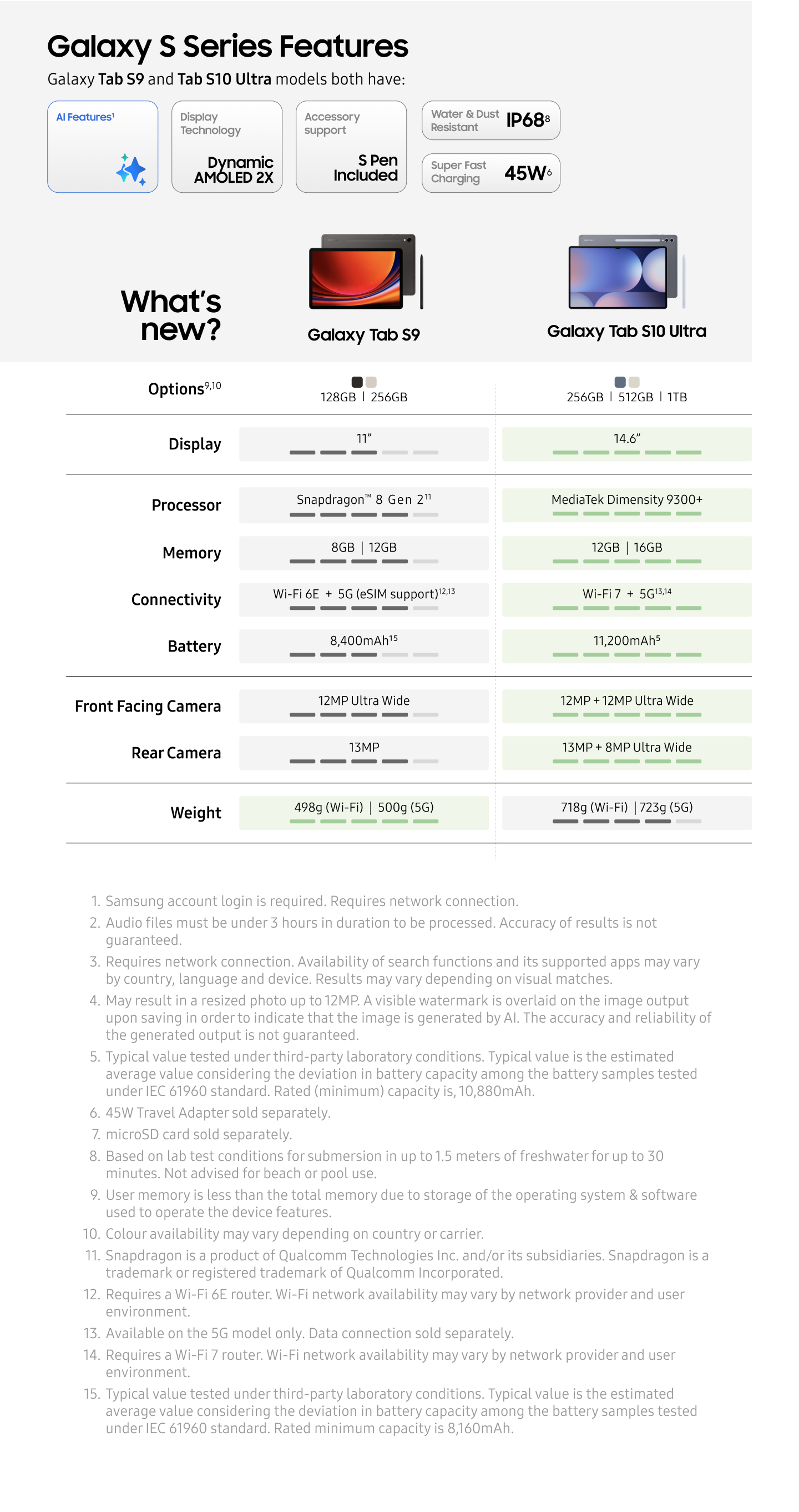 • The first-ever AI-powered tablet: Galaxy Tab S10 Series is pre-equipped with Galaxy AI, Every detail designed to elevate your creativity, from the redesigned pen to the captivating camera deco