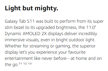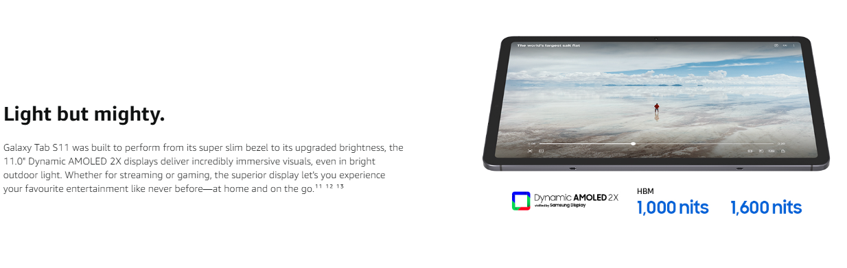 • Built to perform: Galaxy Tab S11’s 11.0" Dynamic AMOLED 2X displays feature super slim bezels and upgraded brightness, for incredibly immersive visuals whether streaming or gaming; Your favourite entertainment even in bright outdoor light