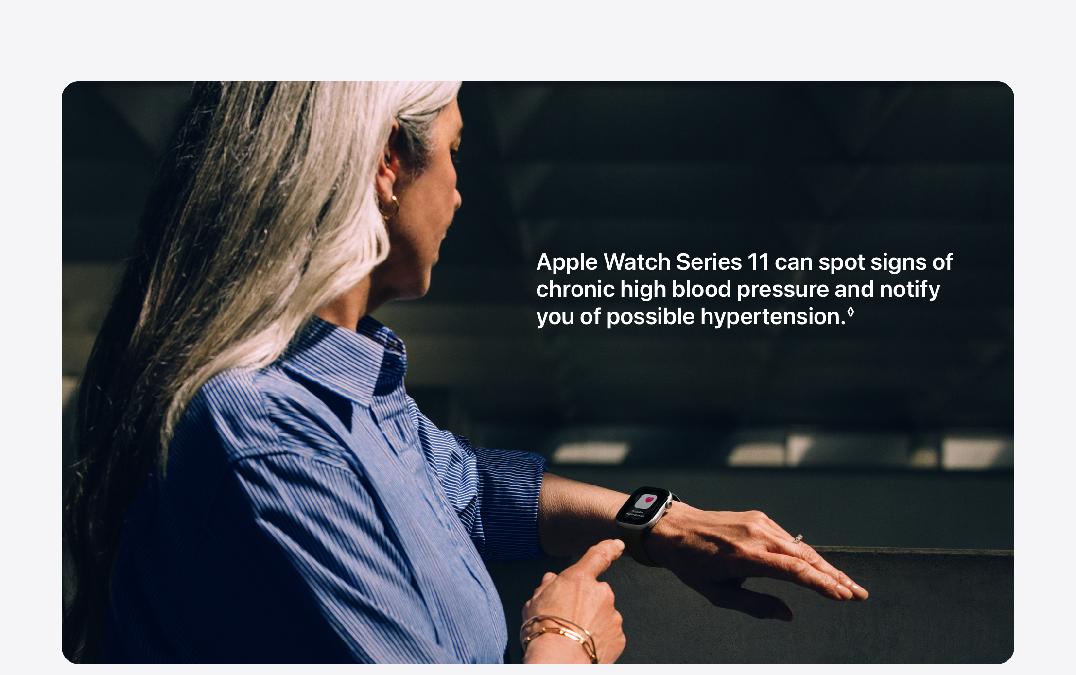 • HYPERTENSION NOTIFICATIONS — Apple Watch Series 11 can spot signs of chronic high blood pressure and notify you of possible hypertension.