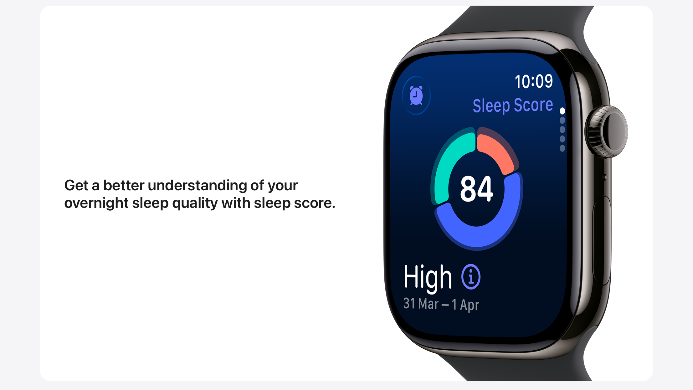 • KNOW YOUR SLEEP SCORE — Sleep score provides an easy way to help track and understand the quality of your sleep, so you can make it more restorative.