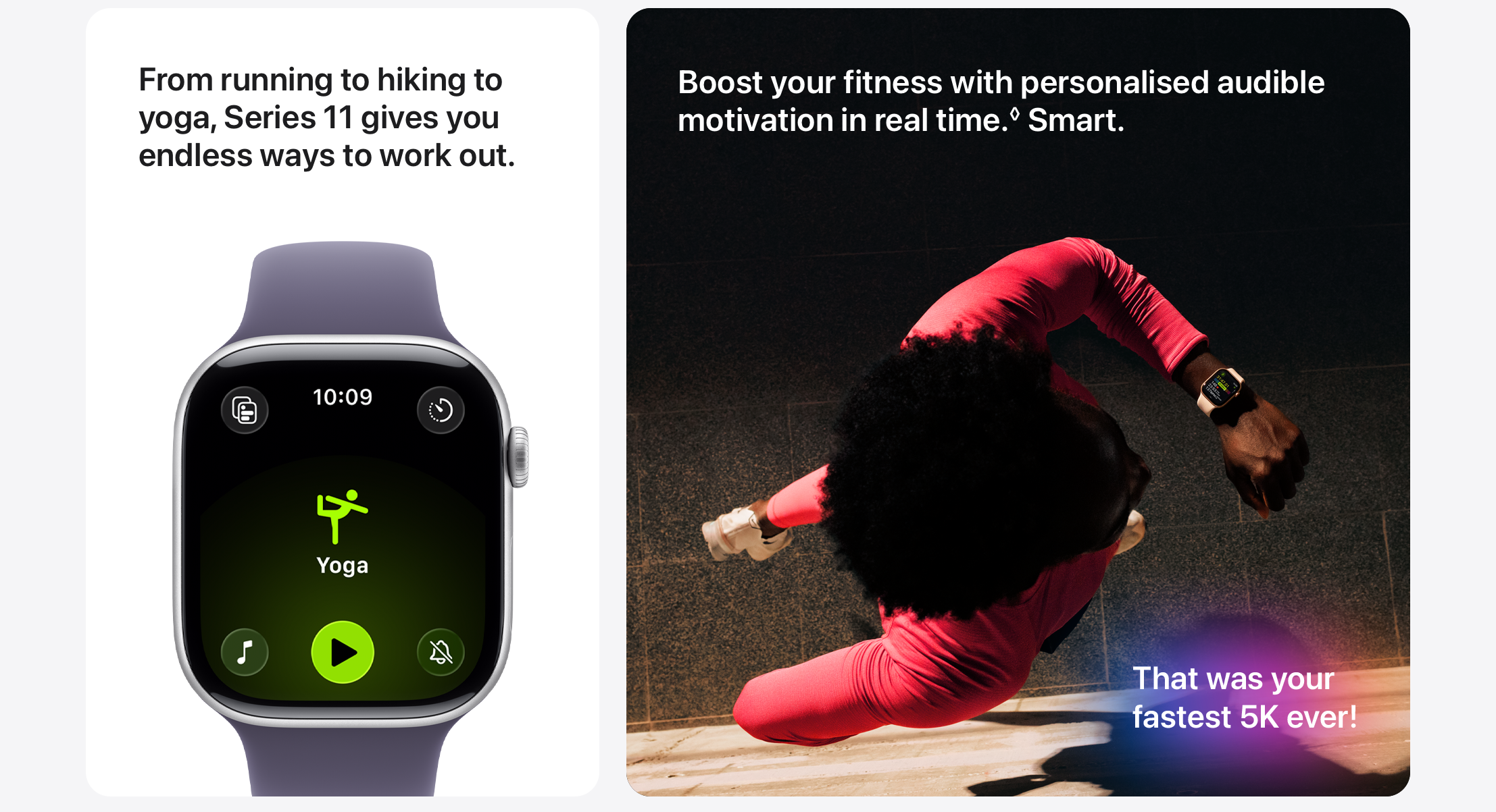 • A POWERFUL FITNESS PARTNER — With advanced metrics for all your workouts, plus features like Pacer, Heart Rate Zones, training load, Workout Buddy powered by Apple Intelligence from your nearby iPhone, and more. Apple Watch Series 11 also comes with three months of Apple Fitness+ free.