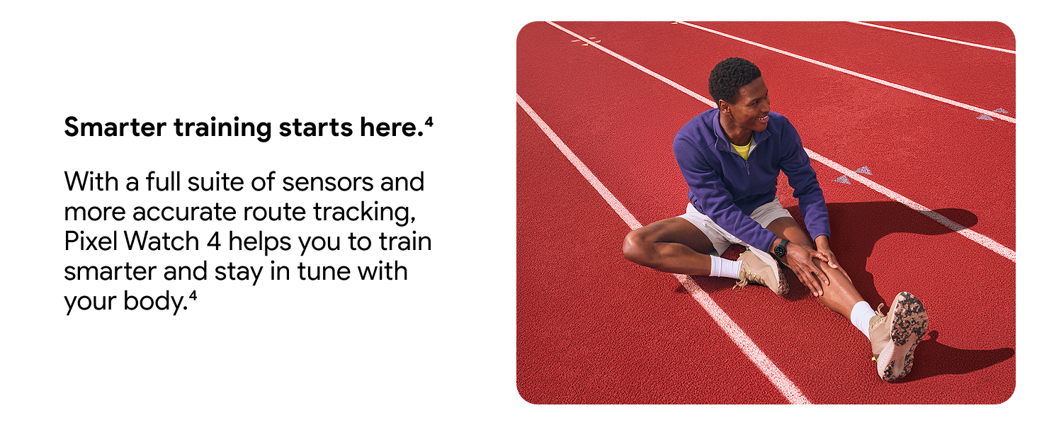 • Training smarter starts with the Pixel Watch 4. It connects the dots between your activity and recovery, so you can make informed decisions about your workouts and optimise your performance.