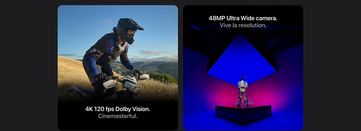 • MAGNIFICENT SHOTS — Take your videos to a whole new level with 4K 120 fps Dolby Vision, enabled by the 48MP Fusion camera. The improved 48MP Ultra Wide camera lets you capture mesmerising detail in macro pics and wide angle photos.