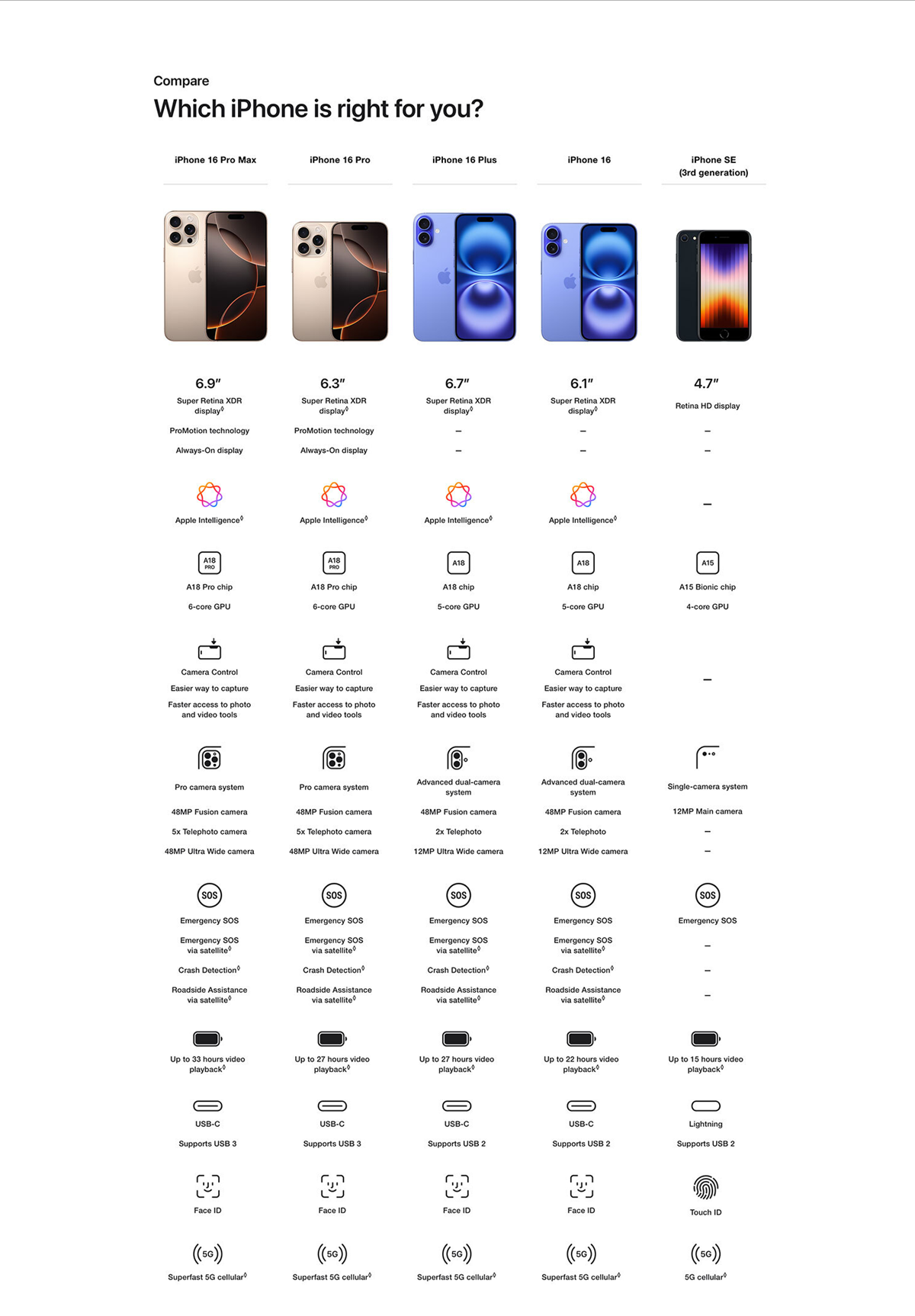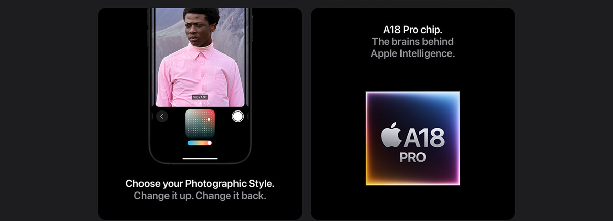 • THE POWER OF A18 PRO — A18 Pro chip enables Apple Intelligence with a faster Neural Engine, improved CPU and GPU, and a big jump in memory bandwidth. It also drives advanced video and photo features and powers AAA gaming.