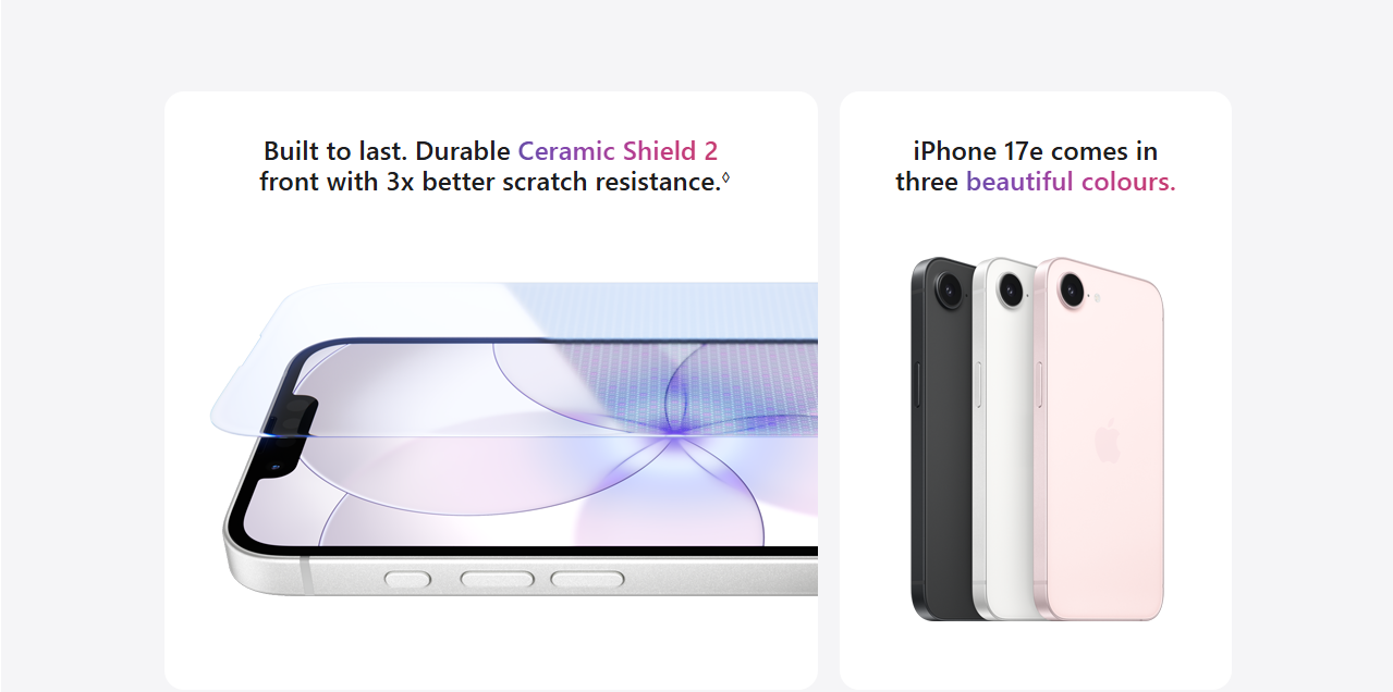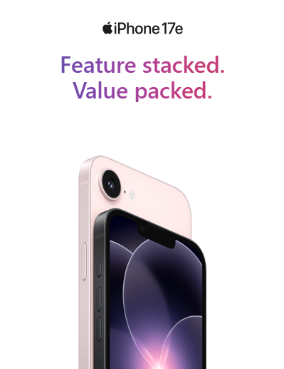 • SAY HELLO TO A GOOD BUY — iPhone 17e comes with many of the same great features as iPhone 17, at a wallet-friendly price.
