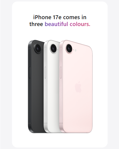 Apple iPhone 17e (512GB) - Black Apple iPhone 17e (512GB) - White Apple iPhone 17e (512GB) - Soft Pink