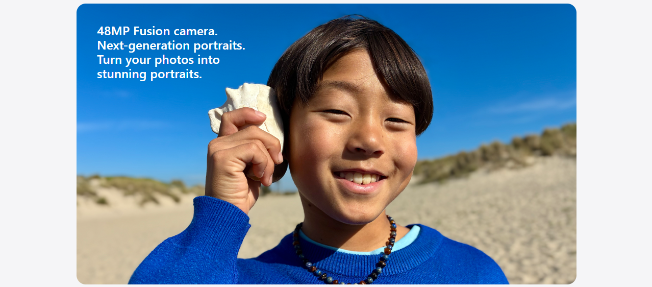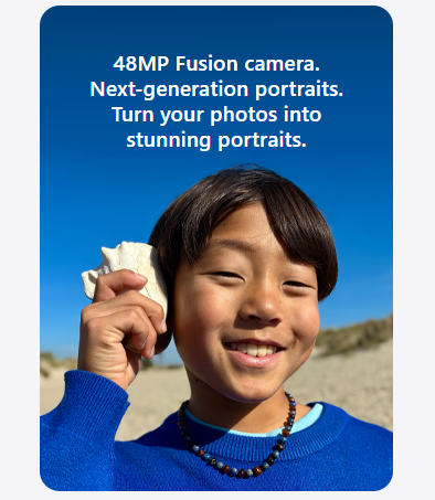 • TWO ADVANCED CAMERAS IN ONE — The 48MP Fusion camera delivers optical-quality 2x Telephoto. And next-generation portraits let you shoot photos in any mode and turn them into beautiful portraits later by adding a background blur after the shot.