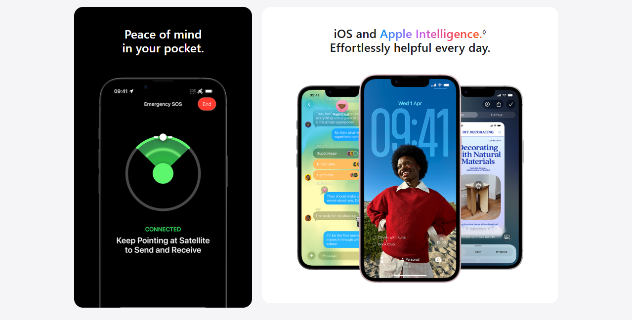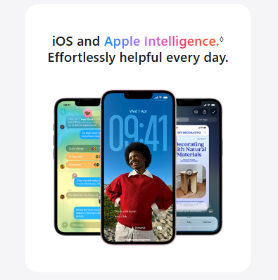 • iOS AND APPLE INTELLIGENCE. EFFORTLESSLY HELPFUL EVERY DAY — Personal, private, powerful. Write, express yourself and get things done effortlessly with advanced features like Call Screening, Clean Up, Live Translation and visual intelligence.
