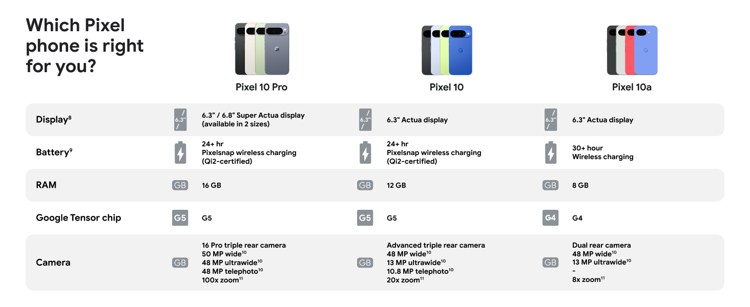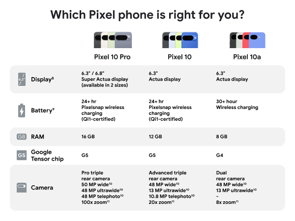 Google Pixel 10a 5G Smartphone (8GB+128GB) - Obsidian Google Pixel 10a 5G Smartphone (8GB+128GB) - Lavender Google Pixel 10a 5G Smartphone (8GB+128GB) - Fog Google Pixel 10a 5G Smartphone (8GB+128GB) - Berry