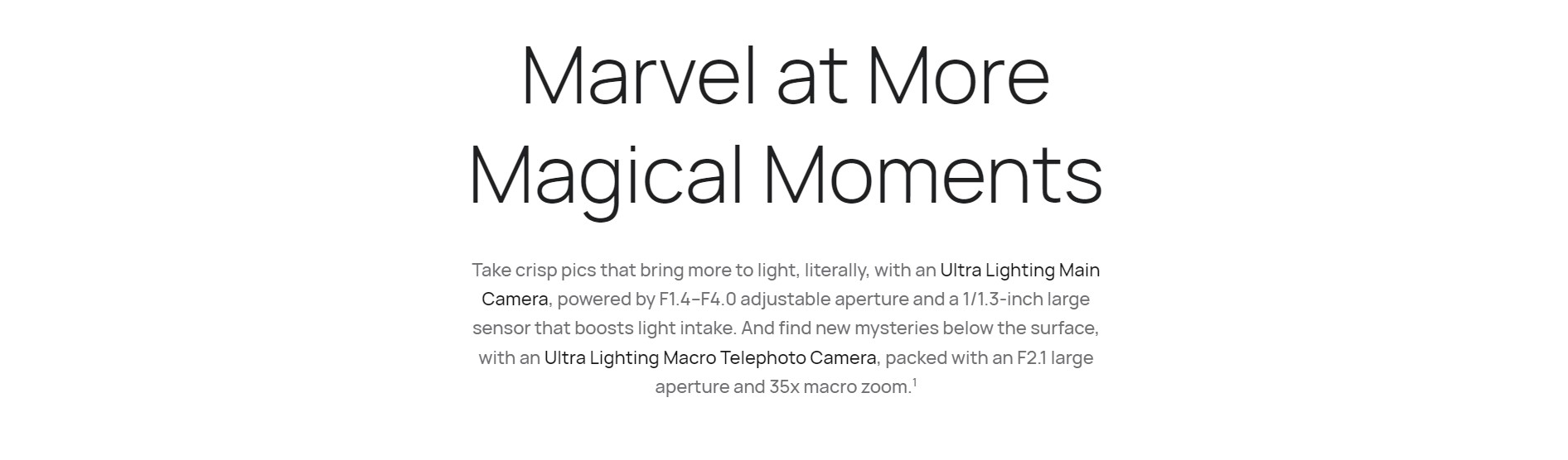 • Capture stunning photos with the Ultra Bright Main Camera, powered by an F1.4-F4.0 adjustable aperture and a large 1/1.3" sensor.