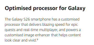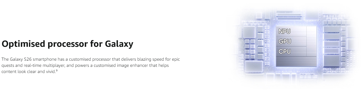 • STAY PRODUCTIVE & INSPIRED: Thanks to its customised processor, the Galaxy S26 smart phone delivers fast speed, smooth visuals and performance that always keeps you ahead of the game