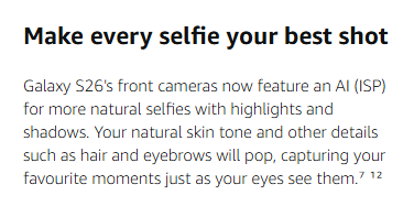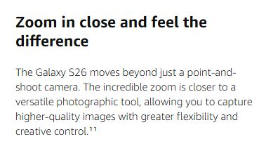 • PHOTO EDITING AT THE TOUCH OF A FINGERTIP: The Galaxy S26 Samsung phone features Photo Assist with Galaxy AI which provides quick and easy photo editing; You can write prompts using natural language, and Galaxy AI will take care of the rest