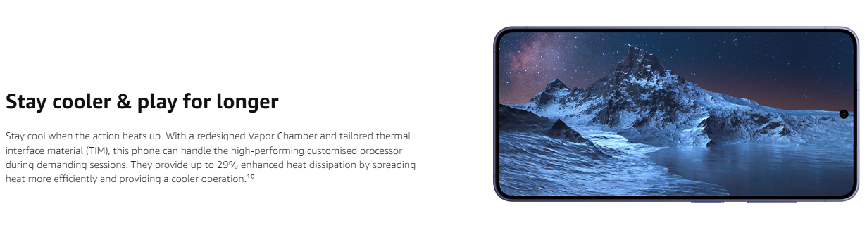 • PRECISION-ENGINEERED COOLING SYSTEM: The Galaxy S26 mobile comes equipped with a newly designed Vapor Chamber, a redesigned temperature control system that spreads heat efficiently for up to 29% enhanced heat dissipation for cooler operation