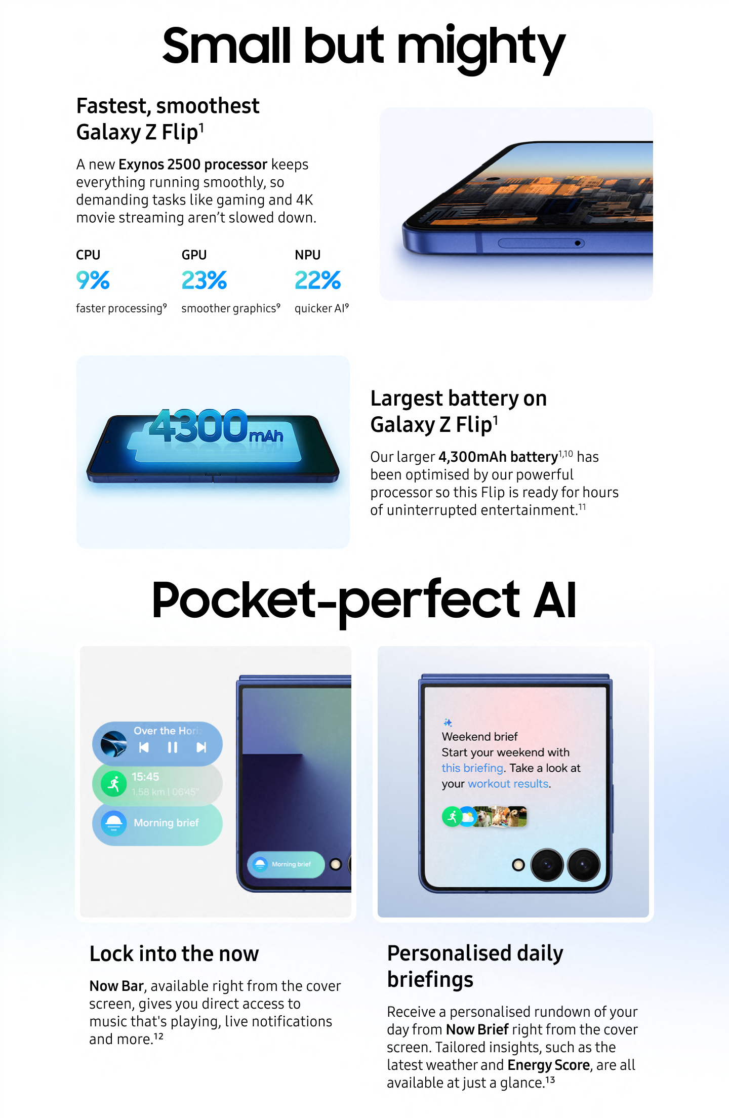 • Pocket-perfect AI, Galaxy Z Flip7 folding phone expands your world; Ask for advice and get information in real time, receive personalised rundowns and tailored insights for your day and more