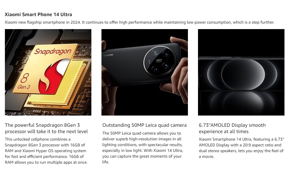 Xiaomi 14 Ultra 5G smartphone (Dual SIM16+512GB) - White Xiaomi 14 Ultra 5G smartphone (Dual SIM16+512GB) - Black