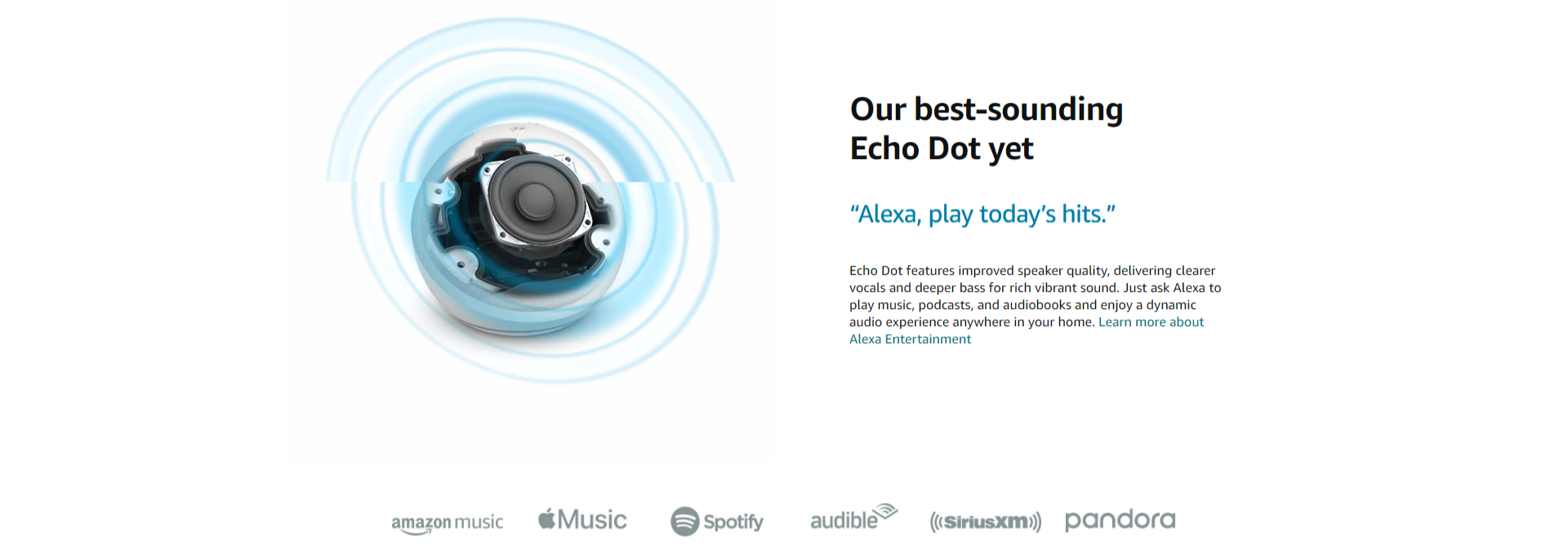 • OUR BEST-SOUNDING ECHO DOT YET - Enjoy an improved audio experience compared to any previous Echo Dot with Alexa for clearer vocals, deeper bass and vibrant sound in any room.