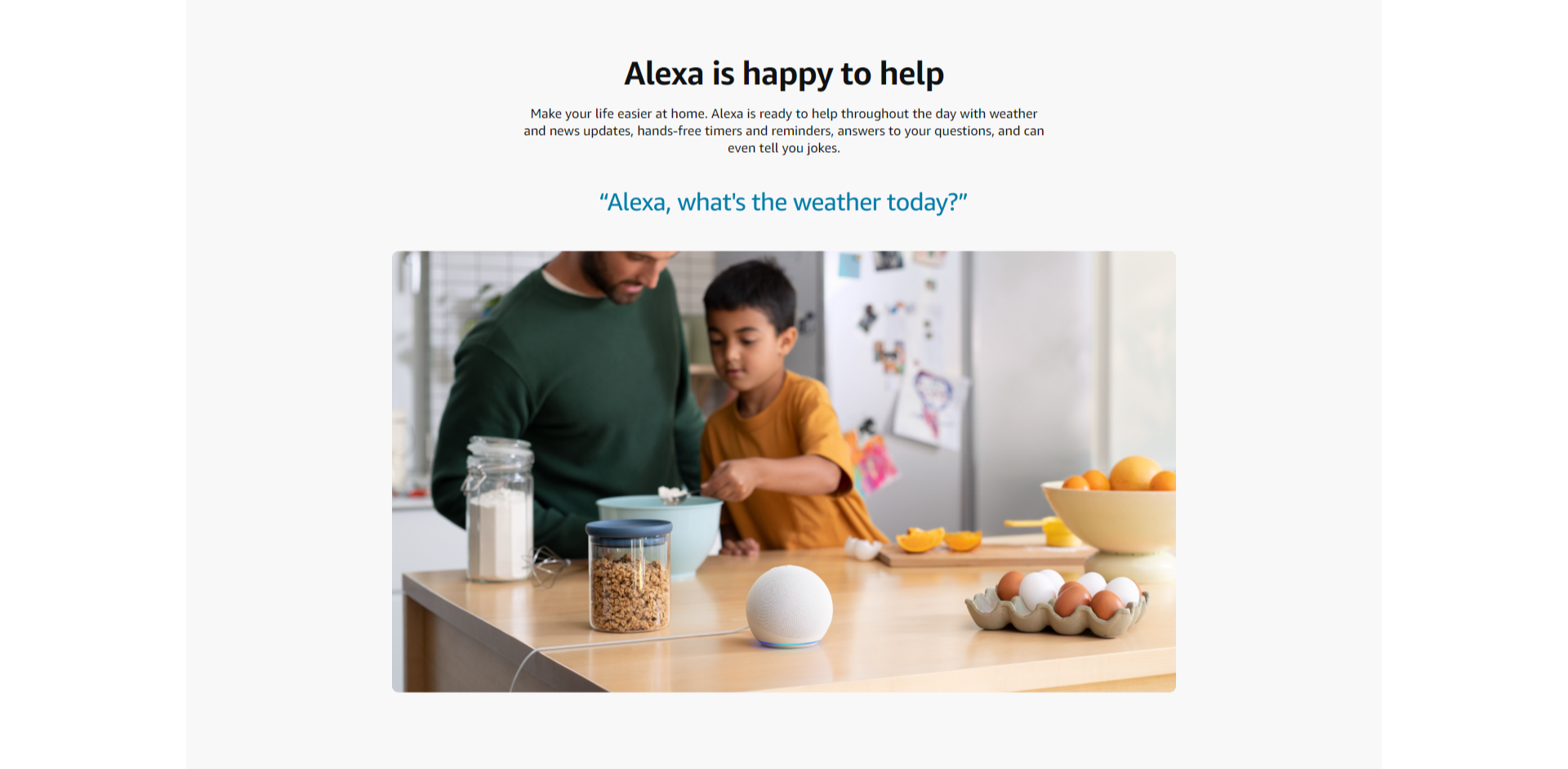 • ALEXA IS HAPPY TO HELP - Ask Alexa for the weather forecast, to set hands-free timers, get answers to your questions and even tell jokes. Need a few extra minutes in the morning? Just tap your Echo Dot to snooze your alarm.