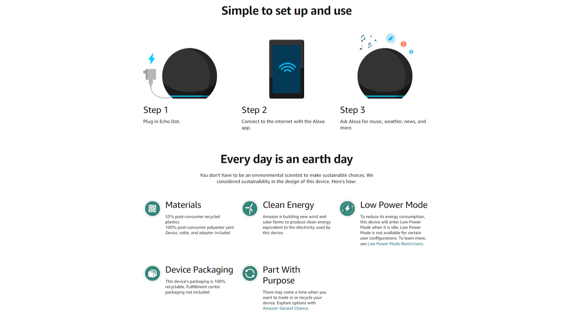• CLIMATE PLEDGE FRIENDLY - We integrated sustainability in the design of this device with 99% of packaging coming from responsibly managed forests or recycled sources, 95% use of post-consumer recycled fabric and 55% post-consumer recycled plastics.