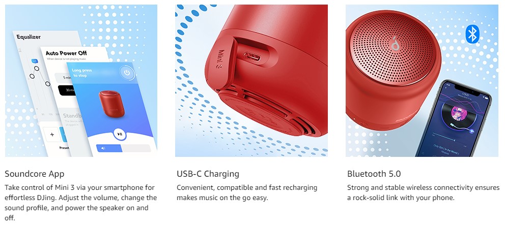 • Your Sound, Your Rules: Connect via the Soundcore app to take remote control of Mini 3 Bluetooth speaker. Power it on or off, adjust the volume, change the sound profile, and much more.