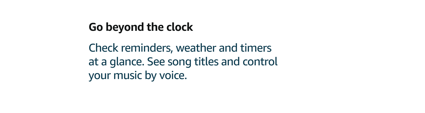 • CUSTOMISABLE SMART CLOCK – See time, weather and song titles at a glance, control smart home devices and more. Personalise your display with your favourite clock face and fun colours.
