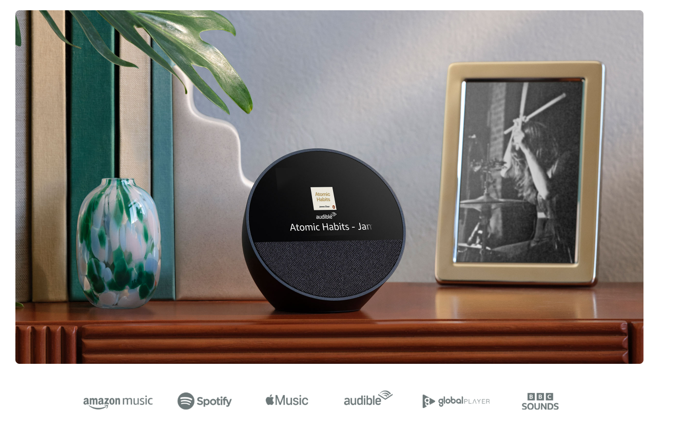 • BIG VIBRANT SOUND – Enjoy rich sound with clear vocals and deep bass. Just ask Alexa to play music, podcasts and audiobooks from your favourite providers like Amazon music, Apple music, Spotify and more. See song titles and touch to control your music.