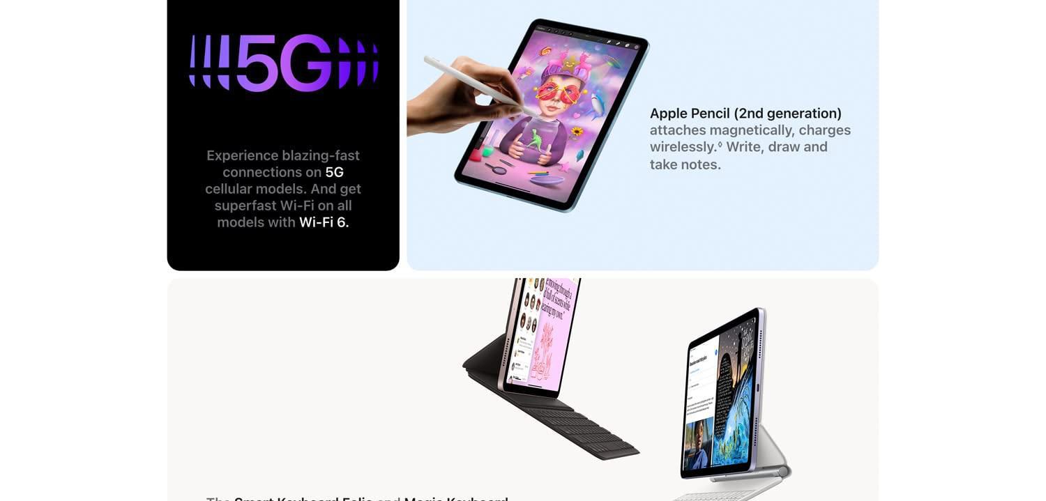 - 10.9-inch Liquid Retina display with True Tone, P3 wide color, and an antireflective coating