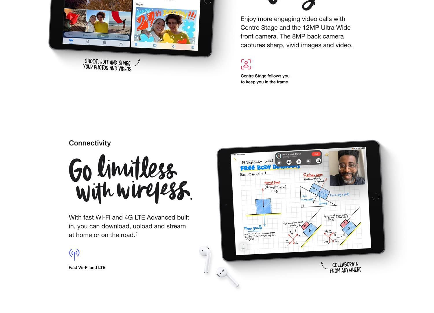 - 8MP Wide back camera, 12MP Ultra Wide front camera with Center Stage