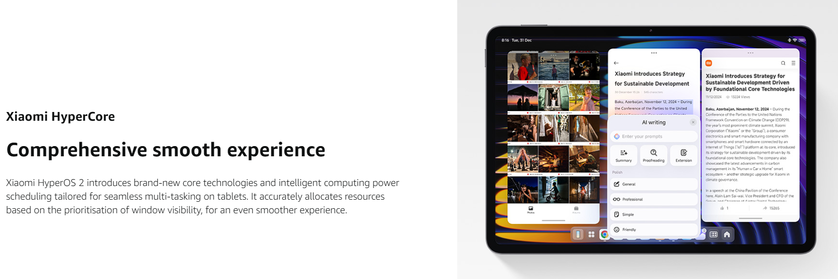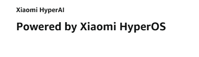 - Xiaomi HyperAI, Powered by Xiaomi HyperOS;